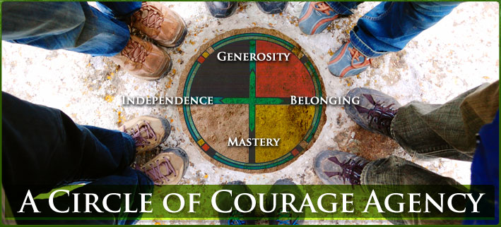 The Circle of Courage is a philosophy that integrates the best of Western educational thought with the wisdom of Indigenous cultures, and emerging research on positive youth development. Research is demonstrating that the Circle of Courage philosophy is not just some wishful thinking, or a throw-back to a simpler time. It is demonstrating that to have a fulfilled and meaningful life, children, adults and staff as well!...need to have a sense of belonging, mastery, independence and generosity in their lives. While the four dimensions of the Circle of Courage can be described individually, they must also be viewed as one in an organization that serves children who are at risk.