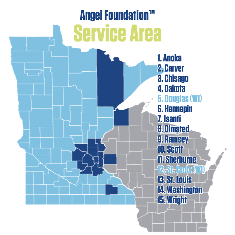• Live or receive cancer treatment in our 15-county service area (Anoka, Carver, Chisago, Dakota, Hennepin, Isanti, Olmsted, Ramsey, Scott, Sherburne, St. Louis, Washington, or Wright Counties of Minnesota, and Douglas or St. Croix Counties in Wisconsin.)