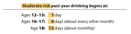 any drinking is considered at least “moderate” risk, and half of drinkers in this age group drink