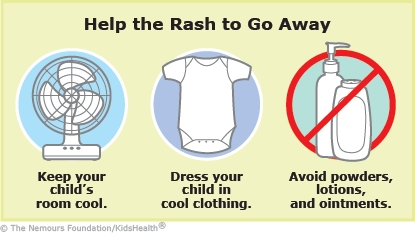 - You can put a thin, clean cloth dipped in cool water on the rash a few times a day. Take the cloth off once it is no longer cool. They also can take a cool bath or shower (but without soap until the rash is gone). Pat the skin dry gently or let it air dry.